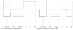 ![]() plantas do duplex na cobertura | ![]() esboços da gradação dos espaços públicos aos privados |